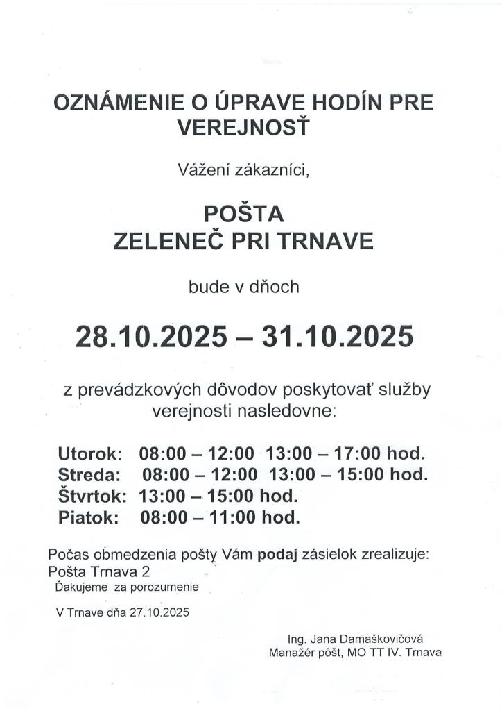 Oznam pošta Zeleneč