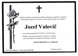 S hlbokým žiaľom oznamujeme, že dňa 22.8.2020 nás vo veku 94 rokov navždy opustil náš spoluobčan pán Jozef Valovič.